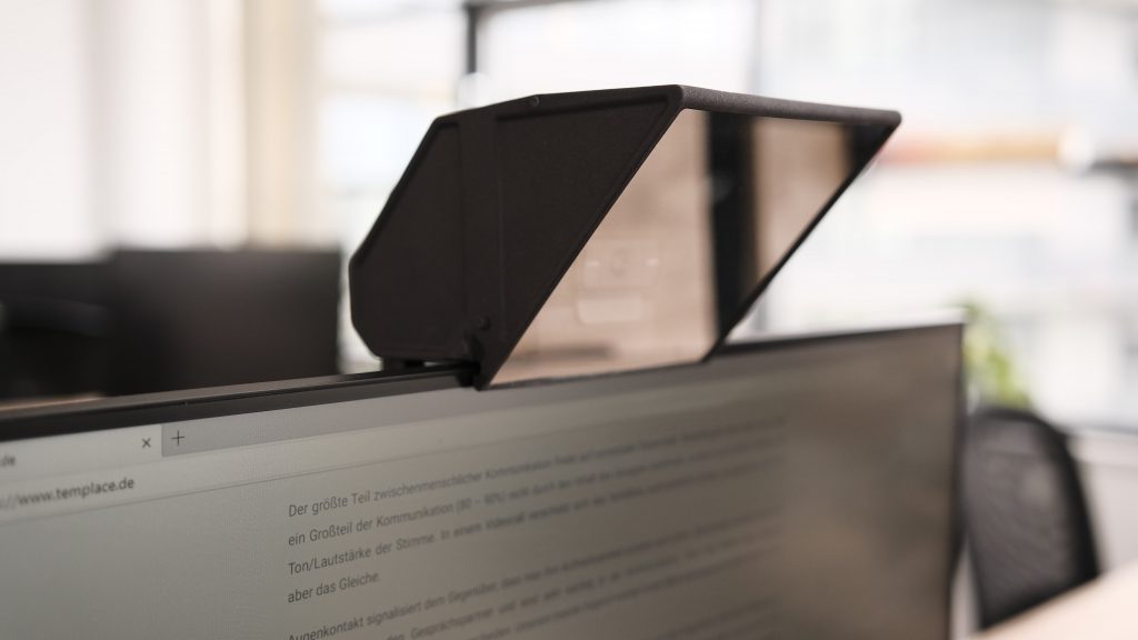 Der Eyecatcher®, entwickelt von Templace Innovations, ermöglicht erstmals authentische Blickbeziehungen in Videokonferenzen – und hebt die virtuelle Kommunikation auf ein neues Level. Die kompakte Konstruktion mit integrierter Spiegellösung platziert die Kamera direkt hinter dem Blickfeld des Gesprächspartners. So entsteht der Eindruck, dass man sich direkt in die Augen sieht – ohne auf Funktionalität oder Design verzichten zu müssen. Der Eyecatcher® bleibt dezent am Monitor befestigt, fügt sich optisch in jede Arbeitsumgebung ein und verbessert die zwischenmenschliche Wahrnehmung in digitalen Meetings erheblich.